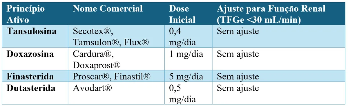 * Tansulosina (Secotex®, Tamsulon®, Flux®) - Dose inicial: 0,4 mg/dia.